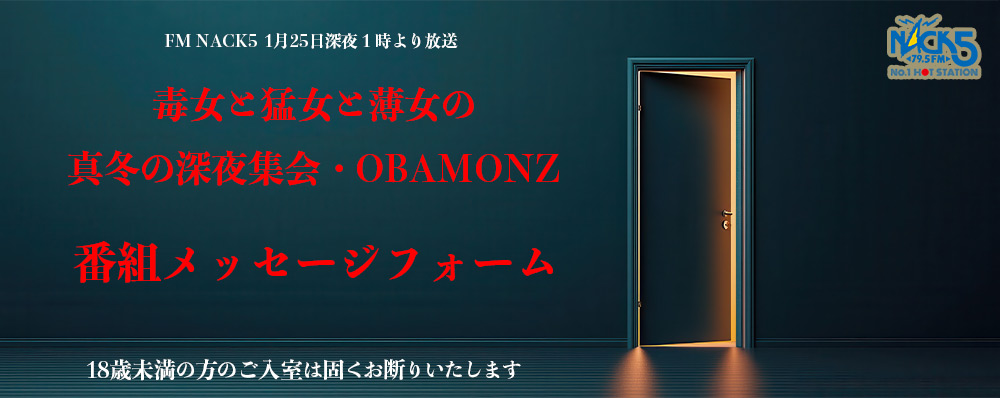 読みものページトップ1月25日深夜1時(25時~) 『毒女と猛女と薄女の真冬の深夜集会・OBAMONZ』 1月25日深夜1時(25時~) 『毒女と猛女と薄女の真冬の深夜集会・OBAMONZ』 2025年12月29日 NACK5 お取り寄せマート trima 番組名 : NACK5お取り寄せマート trima プレゼンツ!『毒女と猛女と薄女の真冬の深夜集会・OBAMONZ』放送日時 : 2026年1月25 日 深夜1時(25時)〜出演 : 棚橋麻衣 小林アナ 横田かおり 読みものページ一覧へ